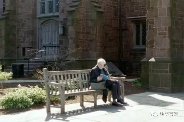 两年一晃就过去,毕业后找到工作搬去费城前,我还在校园里出没,打打工听听讲座。有一次远远看见史教授在路边长椅看书,阳光照过去,这一幕真是好看,赶紧拍下来。后来把照片印出来,放到他系里的信箱,署名“ From Paparazzi Huan” (来自狗仔队欢)。之后他觉得很好笑,给我回email。